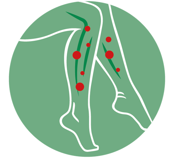 - pijnlijke en rusteloze benen en nachtelijke krampen als gevolg van een gestoorde bloedafvoer in de benen